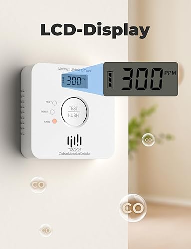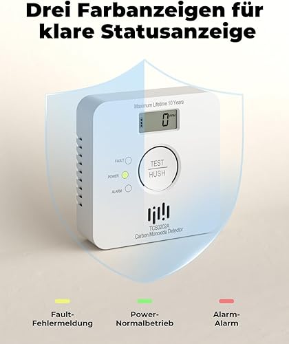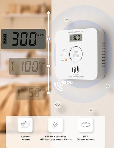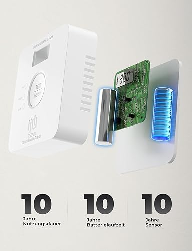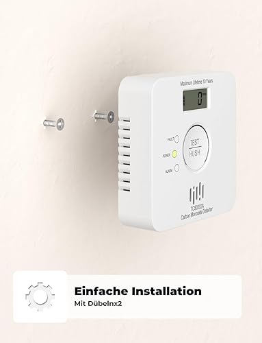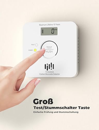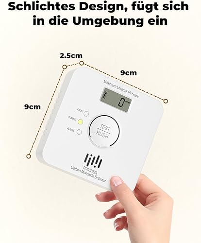LIORQUE Kohlenmonoxid Melder, CO Melder mit 10-Jahres-Batterie, 10 Jahre Sensor, LCD Display, 85 dB Alarm, EN 50291 Zertifiziert, Weiß