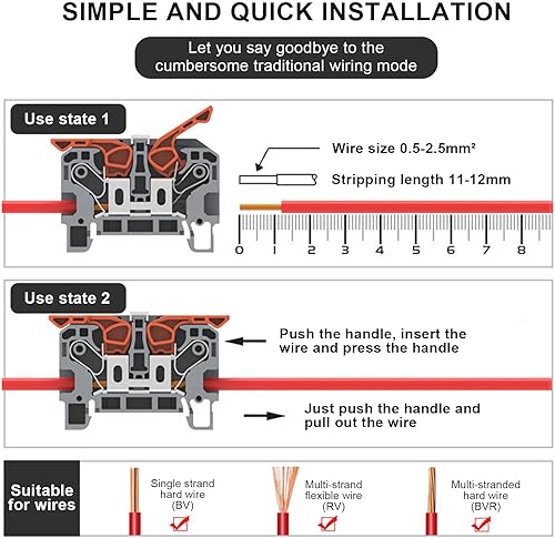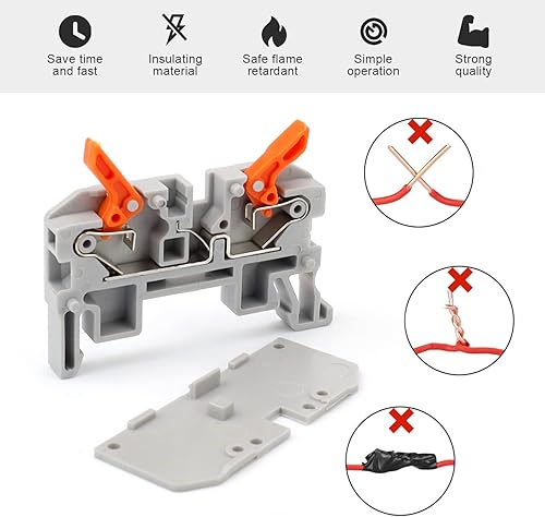 Reihenklemmen Hutschiene, DIYCUT 10 Stück Grau 0,5-2,5mm² Klemmleiste Hutschiene zum Schnellen Verdrahten, Durchgangsklemme für Präzise Leitende Elektrische Verbindungsklemmen