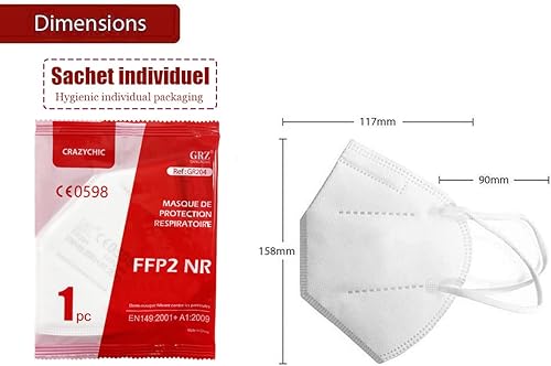 CRAZYCHIC - 20 Stück FFP2 Maske Atemschutzmaske - CE EN 149 Schutzmaske Weiß - 5 Lagen Hohe Filtration Maske - Mundschutzmaske - Staubschutzmaske Einzelverpackt