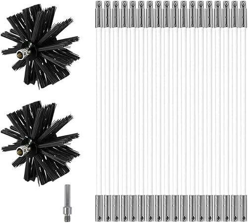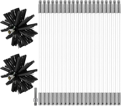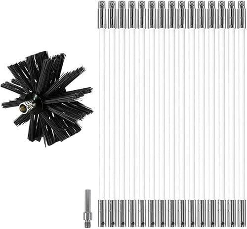 MOCNT Kaminbürste Stange Set Ofenrohrbürste Reinigungsbürste Schornsteinbürste Schornsteinfegerbesen Kaminbesen für Kamin Trockner mit 9 flexiblen Stangen 1 Bürstenkopf