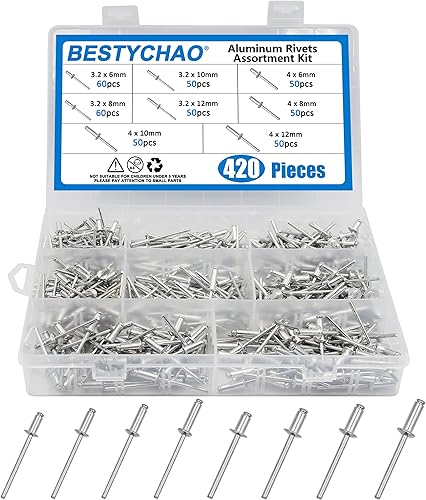 BESTYCHAO 420 Stück 8 Größen Aluminium Blindnieten, M3.2 M4 Pop Nieten Sortiment Kit (Schwarz)