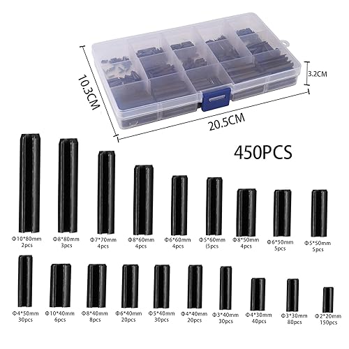 CLKE Hohlsplinte Sicherungsring Sortiment, 450 Stück Geschlitzte Federstifte aus Edelstahl, Spannstifte, Hohlspannstifte, ø 2.0 bia 10 mm Spannstifte für Metallbeschläge und Elektrogeräte Reparatur