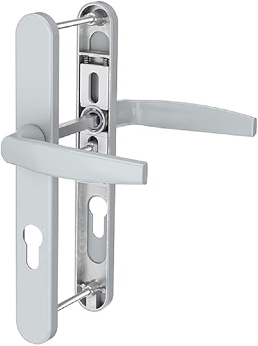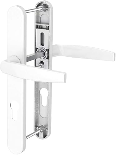 Schmalrahmengarnitur Schutzbeschlag Aluminium Schildgarnitur Wechselgarnitur 8 / 92mm (Bügel/Drücker, Weiß - RAL 9016)