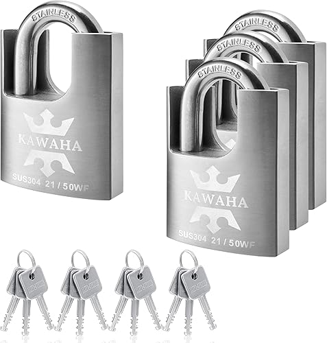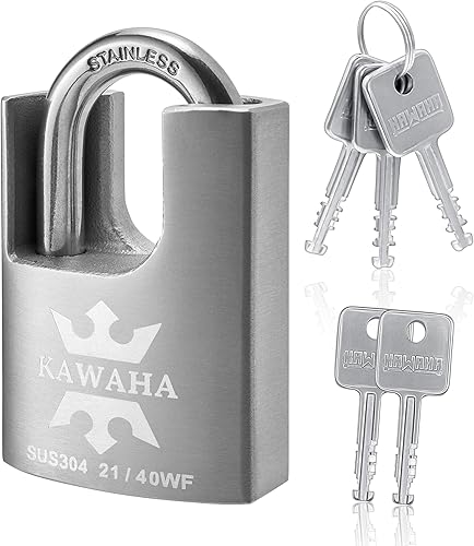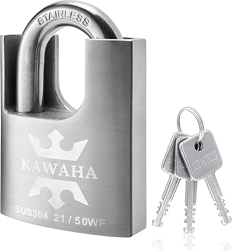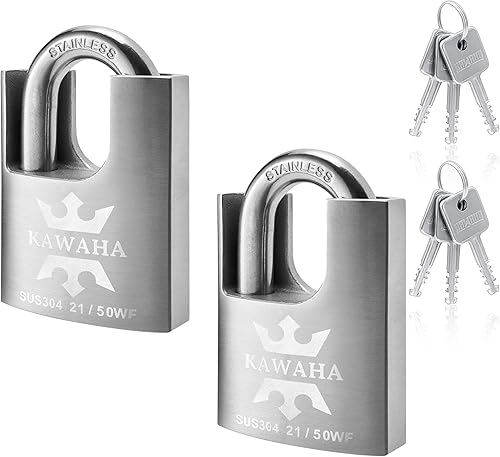 KAWAHA 21/60-2PS Hochsicherheits-Vorhängeschloss aus Edelstahl mit Edelstahlschlüssel für den Innen- und Außenbereich (robust, rostfrei) (60 mm, gleichschließend, 2 Stück)