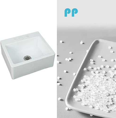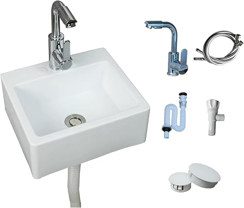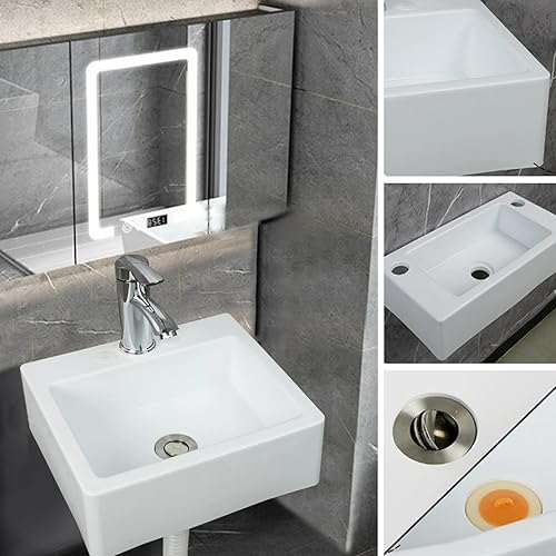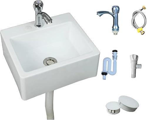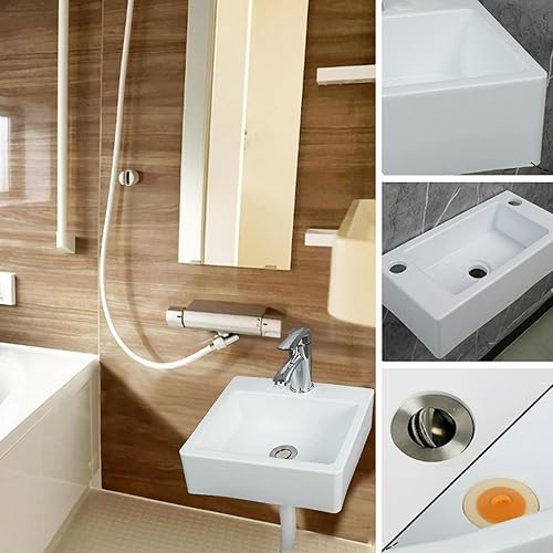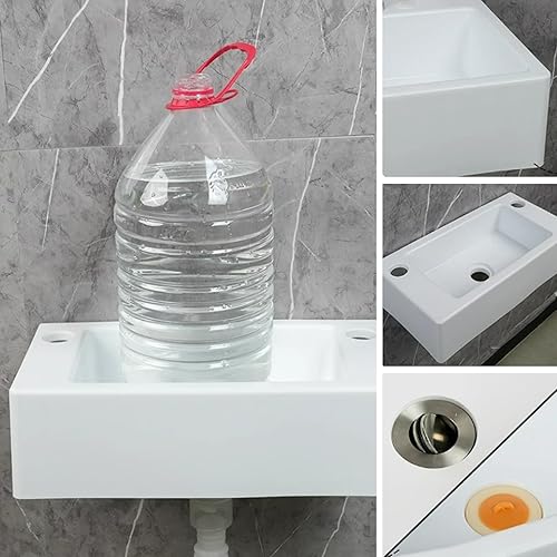 TYTFTDLD Weißes Kunststoff gebogenes quadratisches Waschbecken mit vier Ecken Badezimmer Waschbecken mit wandhängendem einschließlich Legierungshahn und Wasserrohr 33.5 * 29 * 13cm[Gerade]