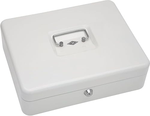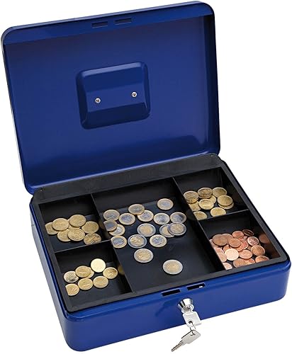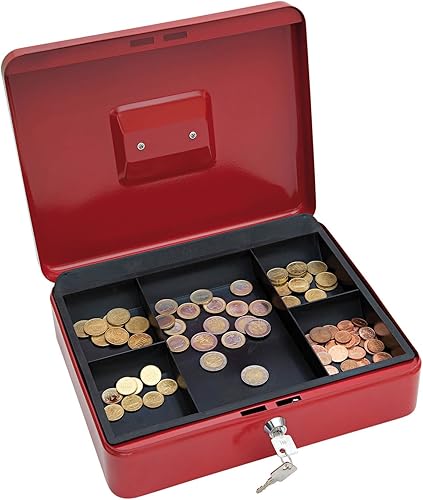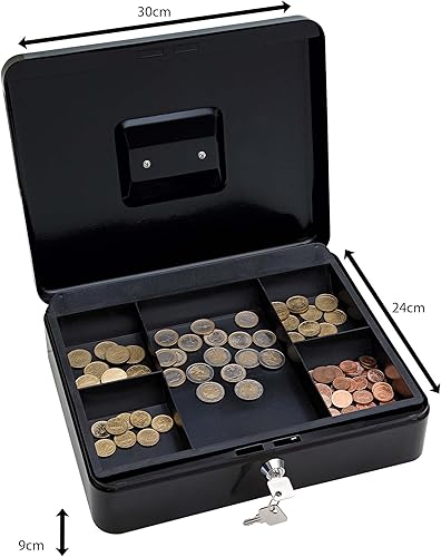 WEDO 145421X Geldkassette (aus pulverbeschichtetem Stahl, versenkbarer Griff, 5-Fächer-Münzeinsatz, Sicherheits-Zylinderschloss, 30 x 24 x 9 cm) schwarz