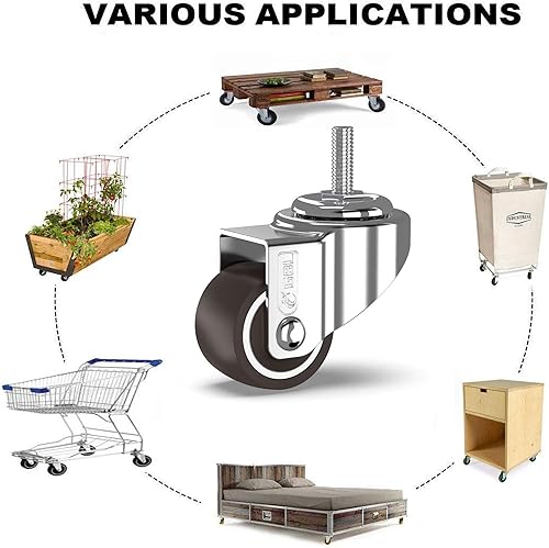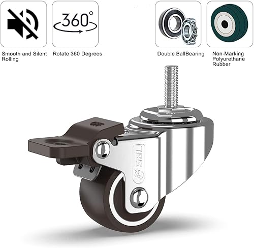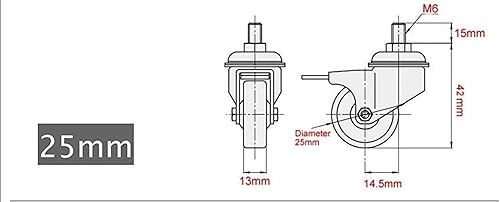 GBL 4er Set Möbelrollen Rollen für Schwerlast - 25mm M6x15mm Gewinde 40KG Rollen Möbel Lenkrollen - 4 Möbelrollen mit Bremse - 4x Gummirollen Lenkrolle Rollen mit Bremse
