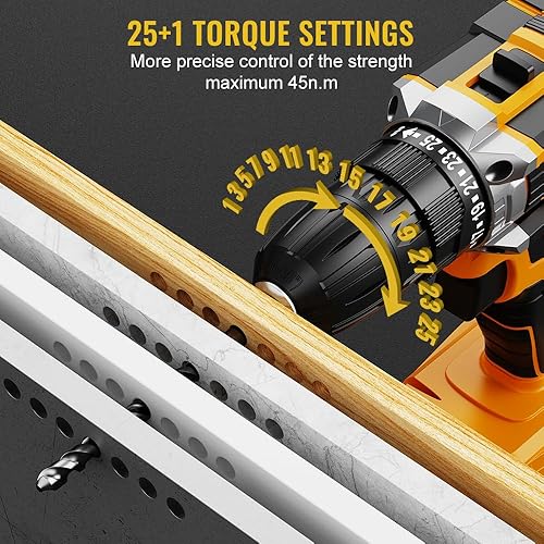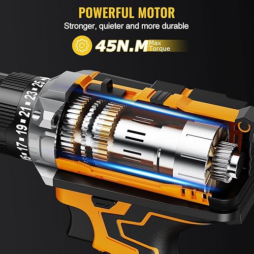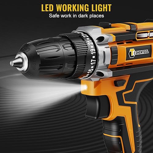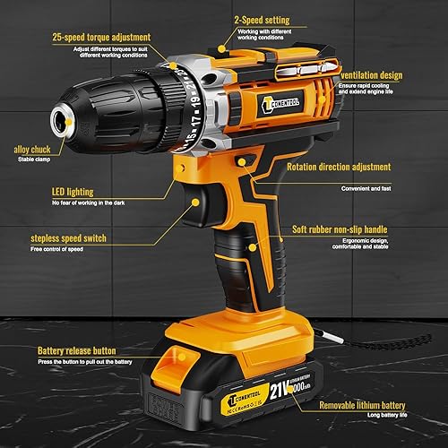 CONENTOOL 21V Akkuschrauber Set, Akku bohrschrauber mit 2000mAh Akkus, 45 N.m Max Akkuschrauber, Drehmoment auf 25+1 Stufen, bohrschrauber mit 30PCS