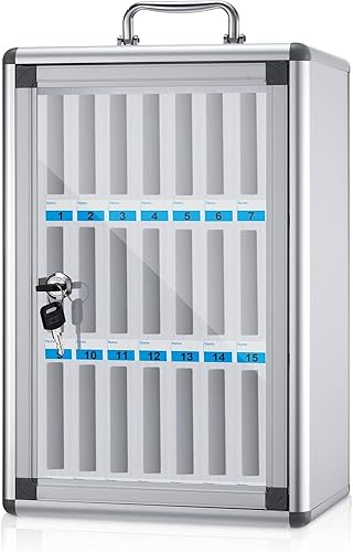 LVRUIEDS Handyaufbewahrung, Persönliche Aufbewahrungsbox Mit 12/15/20/25/30/40 Steckplätzen, Transparentes Handyschließfach Mit Schloss, Desktop-Handy-Aufbewahrungsschrank Für Mitarbeiter(20 Slots)