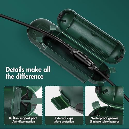 Jasfyee Safe-Box/Schutzbox Für Verlängerungskabel, IP54 wasserdichte Verlängerungskabel Sicherheitsbox, Steckerschutz wasserdichte Elektrobox, Grün Safe Box Kabel Außen Kabelbox Steckdosenschutz