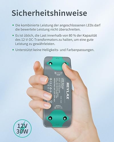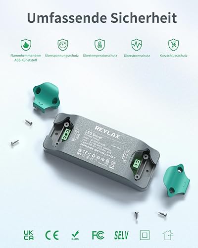 REYLAX LED Trafo 12V 30W, Trafo 230V auf 12V 2.5A, Konstante Spannung LED Netzteil 12V, LED Treiber Transformator, Niedervolttrafo für LED Streifen, Ersetzt für Halogenlampen, Nicht Dimmbar