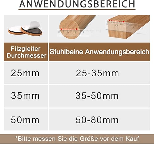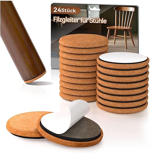 24 Stück Filzgleiter für Stühle, 25mm Filzgleiter Selbstklebend Stuhl, Möbelgleiter Filz für Möbel Rund Stuhlbeinkappen