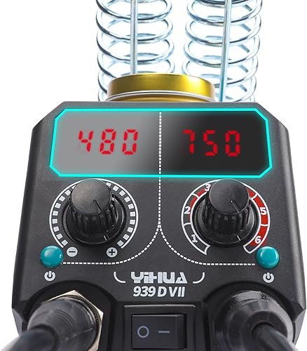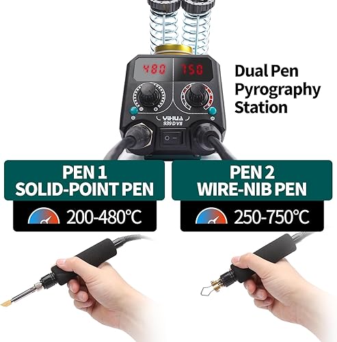 YIHUA 939D-VII brandmalerei-Werkzeug Holzbrennstift-Set Station 2-in-1 Solid-Point 200-480°C (mit Temperaturanzeige)/Drahtspitze 250-750°C mit 23 Spitzen, 25 Solid Points, 4 Holzstücken