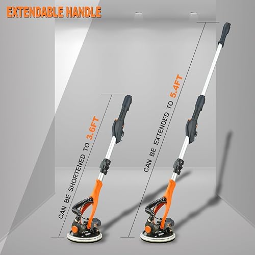 MAXXT Drywall Sander Electric Foldable Wall Sander REAL self-priming system LED light telescopic handle variable speed 6.5A motor six 9-inch sanding discs dust bag