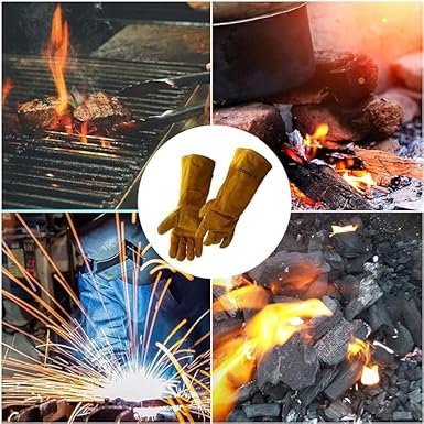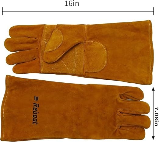 Reboot Schweißerhandschuhe hitzebeständige Handschuhe feuerfeste Handschuhe für Holzbrenner gespaltenes Rindsleder Schweißerhandschuhe Riggerhandschuhe Grillhandschuhe Holzofen-16
