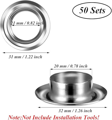 50 Sets Ösen Set, 20mm Ösenzange Metallösen, Grommet Werkzeug Kit, Ösen mit Scheiben, Silber Metallösen für Schuhe, Kleidung, Tasche, DIY Handwerk (Installationswerkzeuge nicht enthalten) Stil D