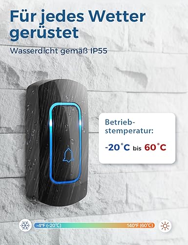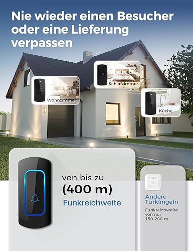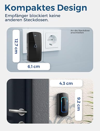 Funkklingel Set, AVANTEK Funk Türklingel Kabellose Hausklingel mit 400m Reichweite, Wasserdicht Funkklingel Außenbereich, 52 Klingeltöne, 5 Lautstärkestufen, 2 Plug-in-Empfänger