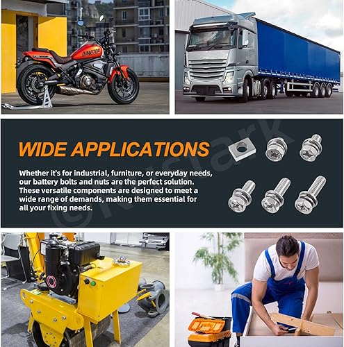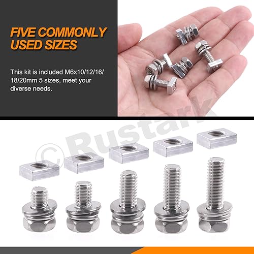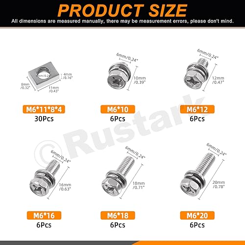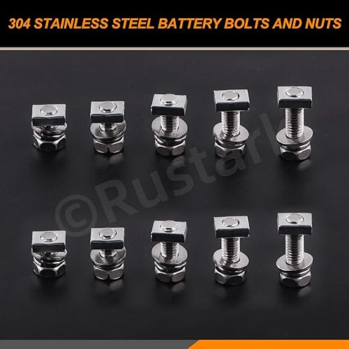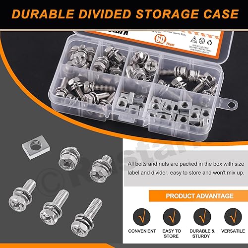 Rustark 60Pcs M6x10mm 12mm 16mm 18mm 20mm 304 Edelstahl Motorrad Batterie Schrauben Muttern Set, ATV Batterieklemme Schrauben Vierkantmuttern Battery Bolts and Nuts für ATV Motorrad Reparaturen