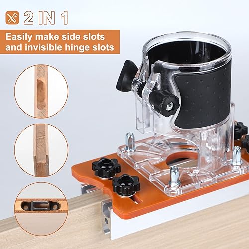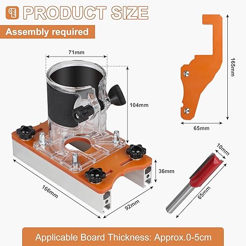 EFUTURETIME Holzfräser Werkzeug Schlitzhalterung Set, Holz-Router-Basis Locator mit 1/4' Fräser für 65 mm Oberfräse, Frässchablone Oberfräse Zubehör für Kanten, Schlitze, 0–5 cm Brett