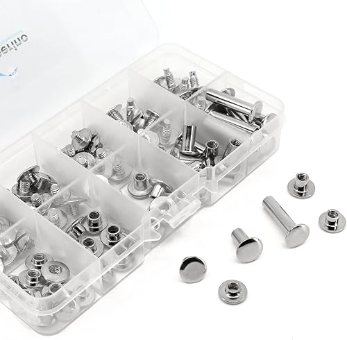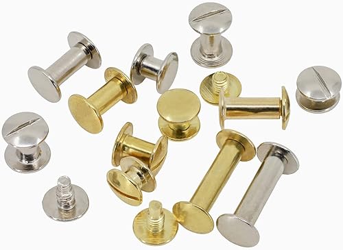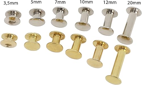 Buchschrauben vermessingt oder vernickelt Chicagoschrauben Buchnieten Größe wählbar versch. Menge Gürtelschraube (vernickelt, 3,5mm - 20 Stk)