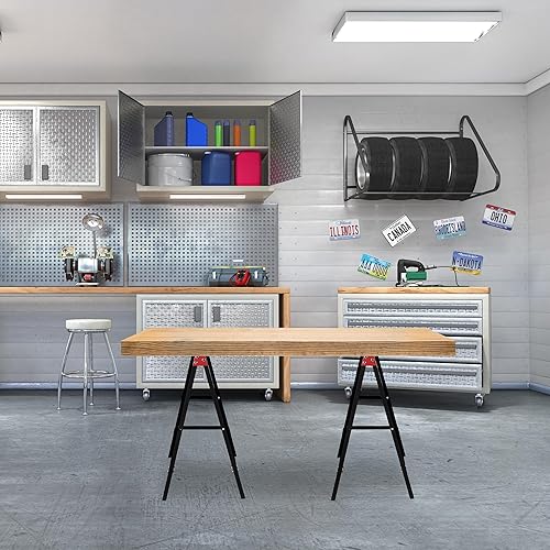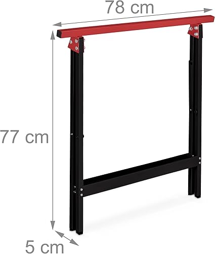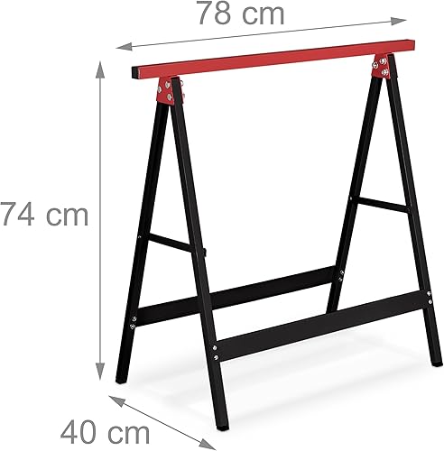 Relaxdays Arbeitsbock 2er Set, klappbar, 100 kg, HBT 74x78x40cm, Allzweckbock Werkstatt, Tapezieren, Malern, schwarz/rot, Stahl
