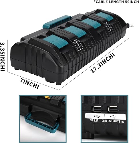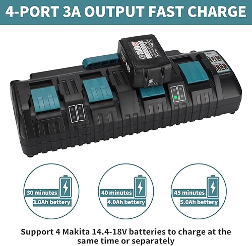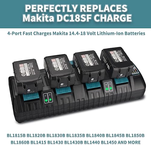 4-Port 3A-Ladegerät für Makita 18V Batterie, DC18SF 14.4-18V Batterieladegerät für BL1850 BL1860B BL1830B BL1840B Li-Ionen-Akku, Ersetzen Sie für DC18RC, DC18RD, DC18RA-Ladegerät (EU-Stecker)