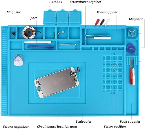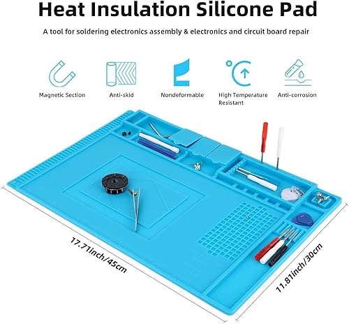 Aweohtle Lötmatte Silikon 500℃ Hitzebeständige Magnetisch Reparatur Matte Arbeitsmatte soldering mat antistatisch für Lötpistolen, Heißpistolen - groß 45x 30cm