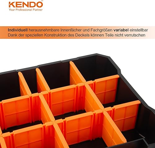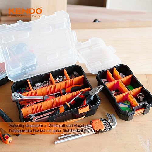 KENDO Sortimentskasten Set – 4-teilig – 49x Fächer – Werkzeugkasten – Für Kleinteile und Werkzeug