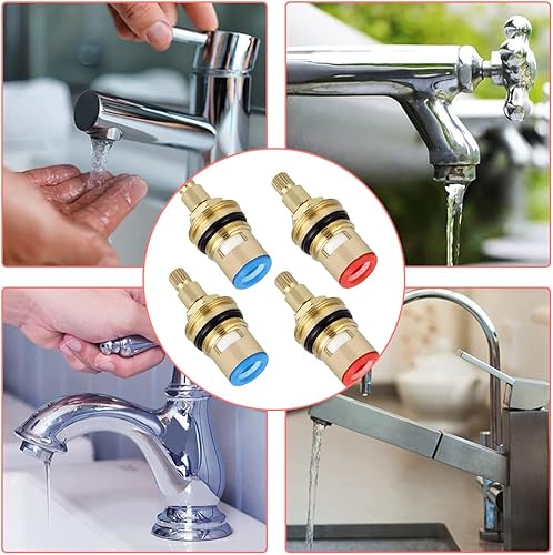 MenYiYDS 4 Pcs Universelles Wasserhahnventil, Ersatzventil für Wasserhahnkartusche, universelle Wasserhahnbox aus Keramik und Messing für Zuhause, Büro, Küchenarmatur (rot, blau)
