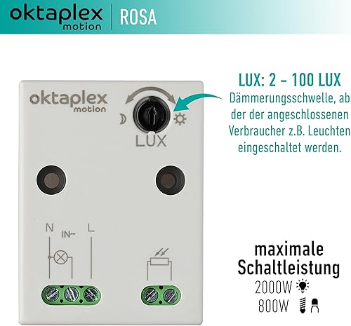 Oktaplex Rosa Mini Einbau Dämmerungsschalter externer Dämmerungssensor IP65 aussen und innen 230V weiss