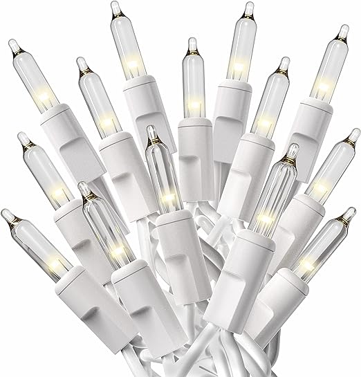 Clear Christmas Tree Mini Lights, 100 Lights, T1 3/4 Shaped, 21 Foot, White Wire, Steady Burning and Flashing