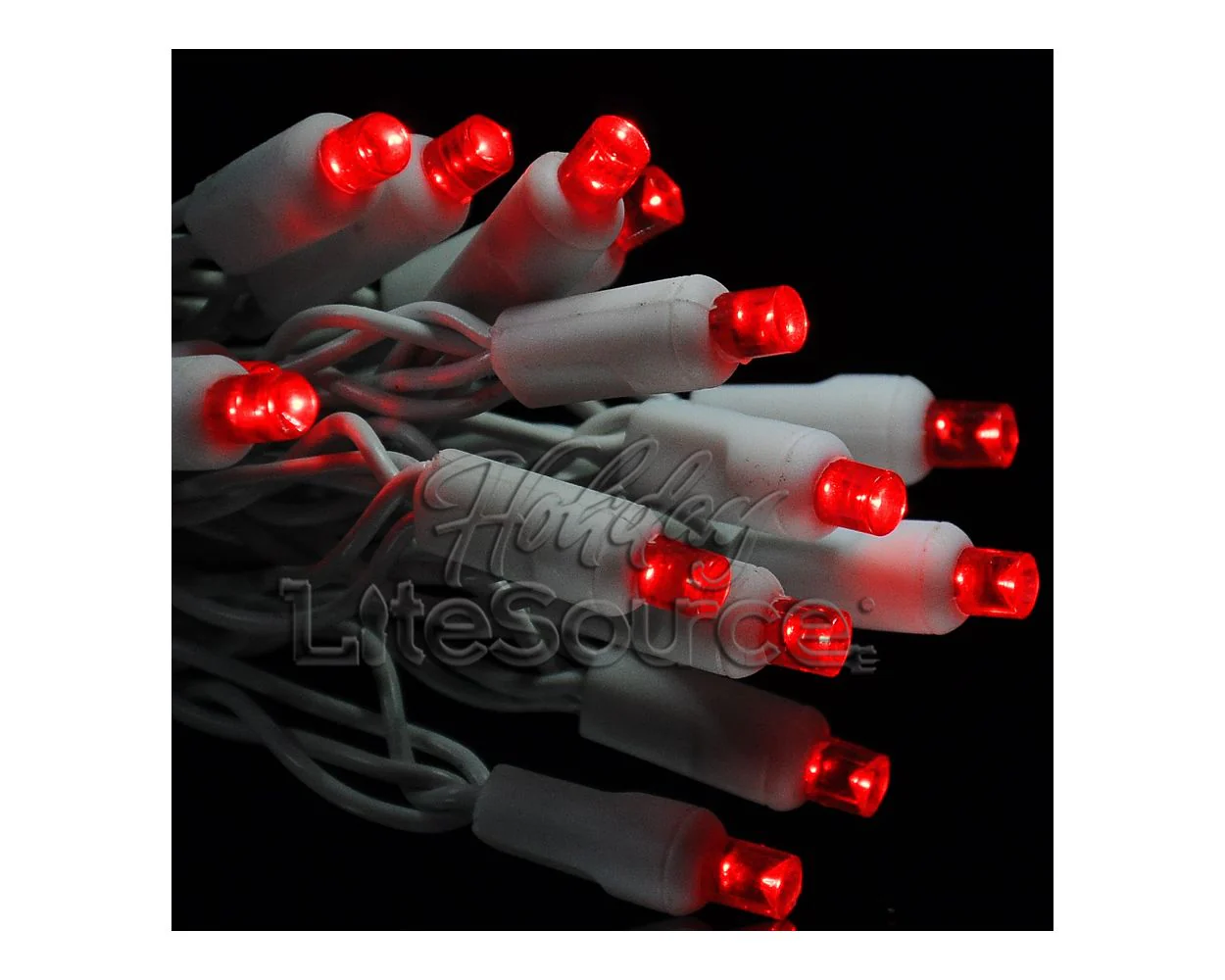50-Light LED Strawberry (C6) Light Set; Warm White Bulbs on White Wire, Approx. 17'8" Long