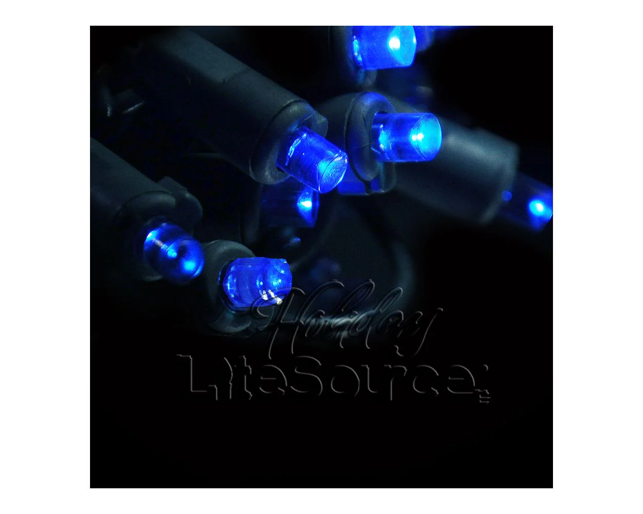 50-LIGHT RECTIFIED 5MM LED LIGHT SET; BLUE BULBS; GREEN WIRE, Approx. 25' Long