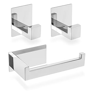 - MODERNES DESIGN: Unser selbstklebender Toilettenpapierhalter und die dazu passenden Handtuchhaken, sind in jedem Raum ein echter Eyecatcher. Sie setzen ein stilvolles Statement durch ihre quadratische Form und die Fertigung aus hochwertigem, rostfreiem Edelstahl 304.